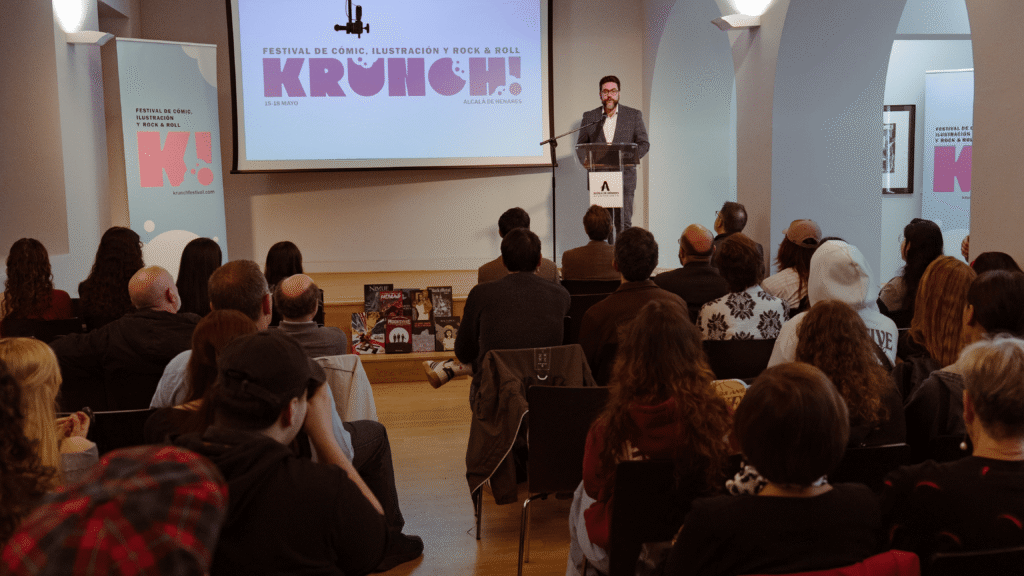 “Hoy abrimos la puerta a una nueva edición de Krunch!, esa explosión de tinta, color y guitarras que durante unos días transforma Alcalá de Henares, ya rica en patrimonio e historia, en una ciudad aún más viva, ilustrada y contemporánea. El Krunch! es casi una actitud, una forma de entender la cultura como un cruce de caminos, un espacio de encuentro entre quienes crean y quienes disfrutan”, ha declarado Santiago Alonso Concejal de Cultura e Igualdad del Ayuntamiento de Alcalá de Henares en la presentación del evento.